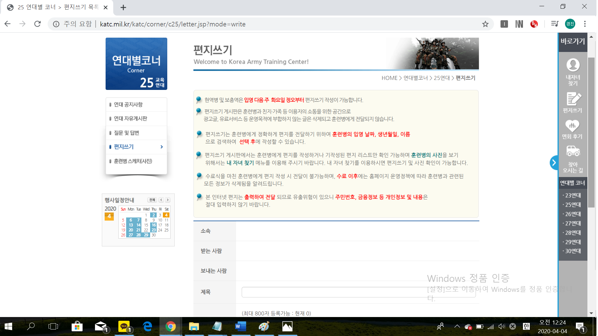 그럼 이제 육군 훈련소 인터넷 편지를 어떻게 보내는지 알아봅시다!