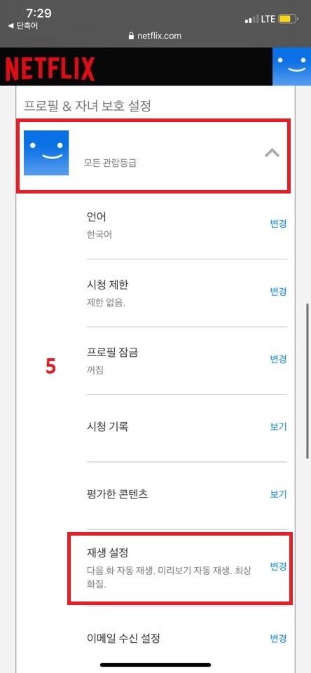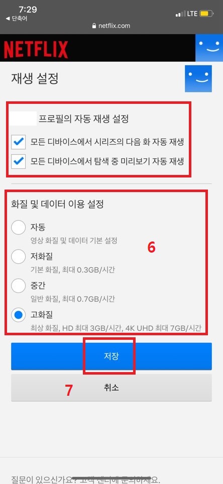 넷플릭스 화질 성정 - 모바일(아이폰)