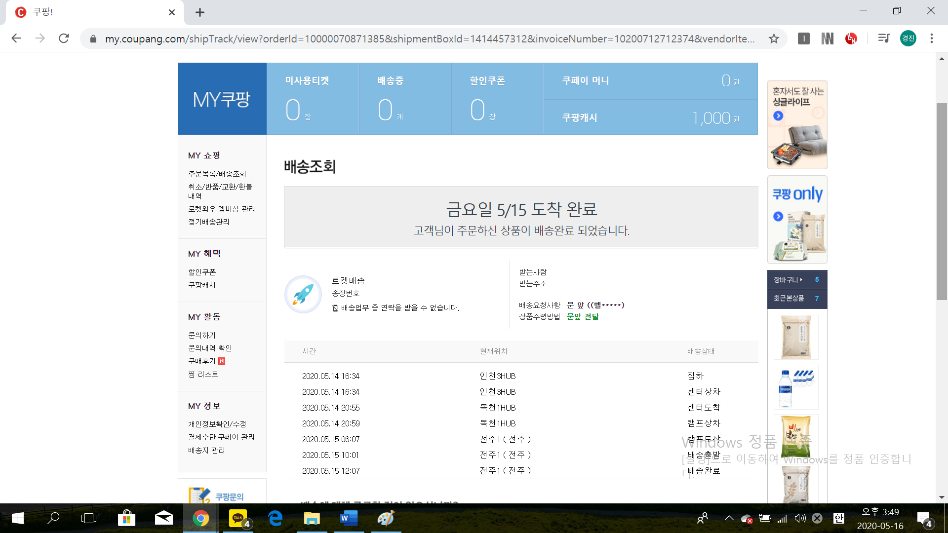 쿠팡 로켓 배송 조회하는 법