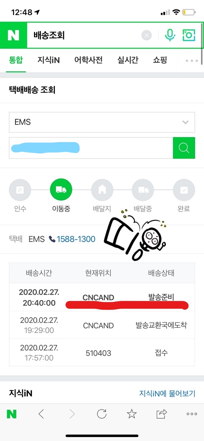 CNCAND에서 일처리가 빠르게 안 되거나 한국에 왔는데 국내 통관이 아직 안 된거 거나...