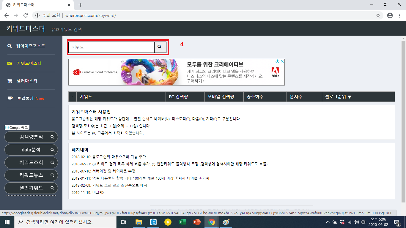 사실 위에 있는 두 번째 사진처럼 각종 포털 사이트에 ‘키워드 마스터’라고 쳐서 들어가면 바로 이용할 수 있어요