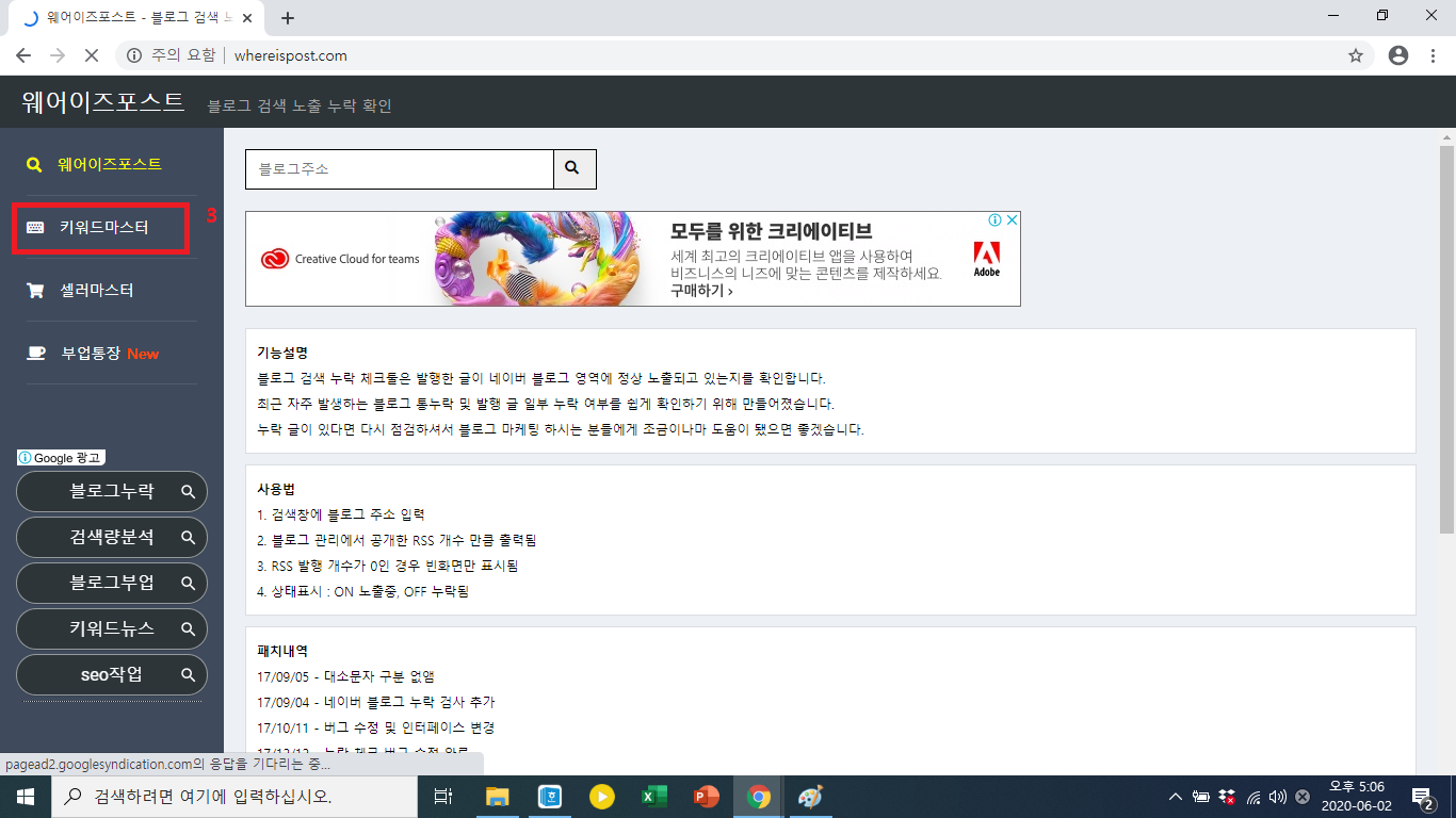 그리고 저희는 지금 키워드를 분석하러 왔으니 좌측 바에 있는 키워드 마스터를 클릭해줍시다