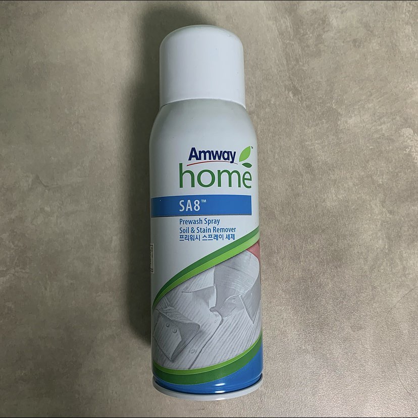 제가 흰옷 얼룩 제거를 위해 사용할 것은 이 세제입니다. 준비물은 이거 하나면 끝입니다. 바로 암웨이 프리워시 스프레이 세제인데요. 처음엔 그렇게 많이 사용하지는 않았는데 흰옷을 자주 입고 다니게 된 이후로 이 세제를 많이 사용하게 되더라고요. 이게 흰옷 얼룩 제거, 이염 제거 와이 셔츠 얼룩 제거와 같이 얼룩 제거제 역할도 하지만, 노래진 흰옷을 다시 하얗게 해주는 효과도 있습니다.