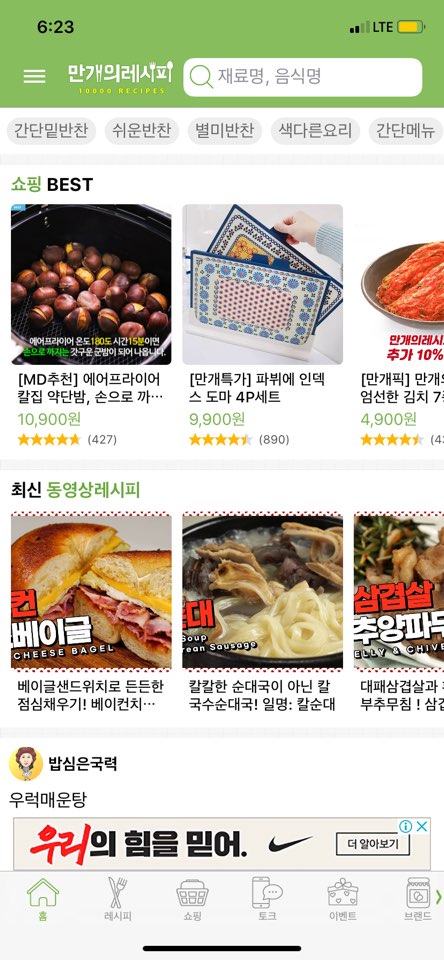 이 만개의 레시피는 이름처럼 주로 음식 레시피를 사진, 동영상과 함께 상세히 알려주는 어플이에요