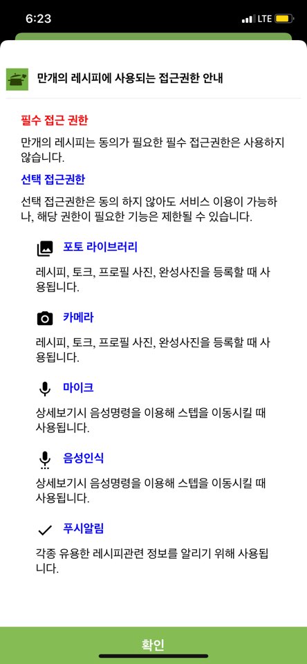 그리고 어플을 들어가서 접근 권한들을 확인해주시고 ‘확인’을 눌러줍니다