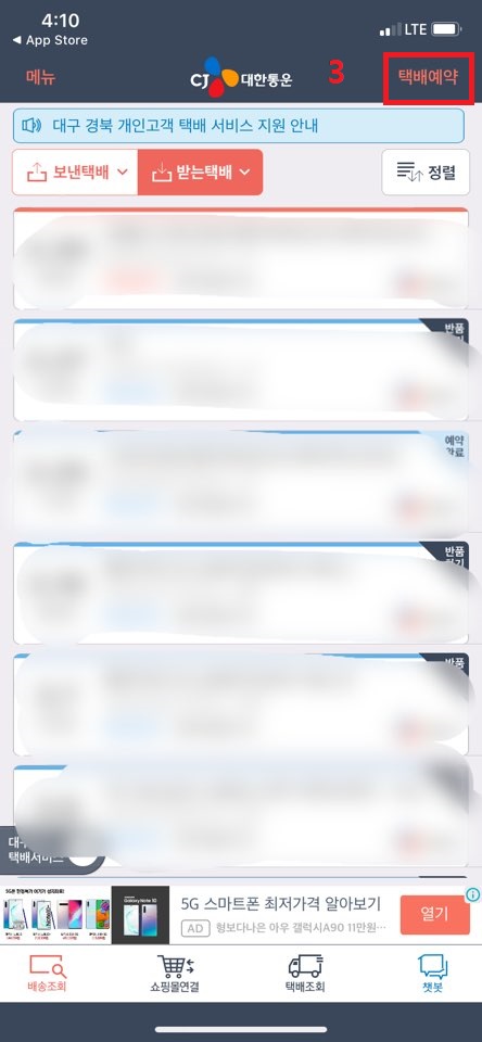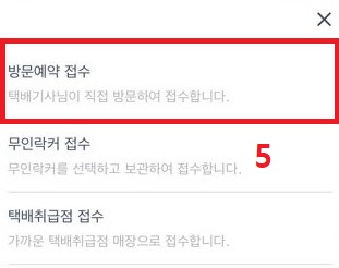 이 창에서 우측 상단에 보면 ‘택배 예약’ 버튼이 있죠?