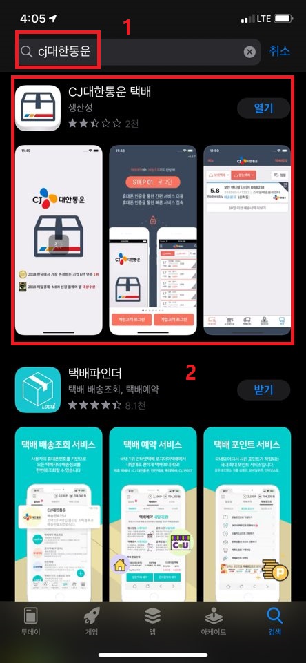 먼저 앱 스토어나 구글 플레이에서 ‘cj 대한통운’을 검색합니다