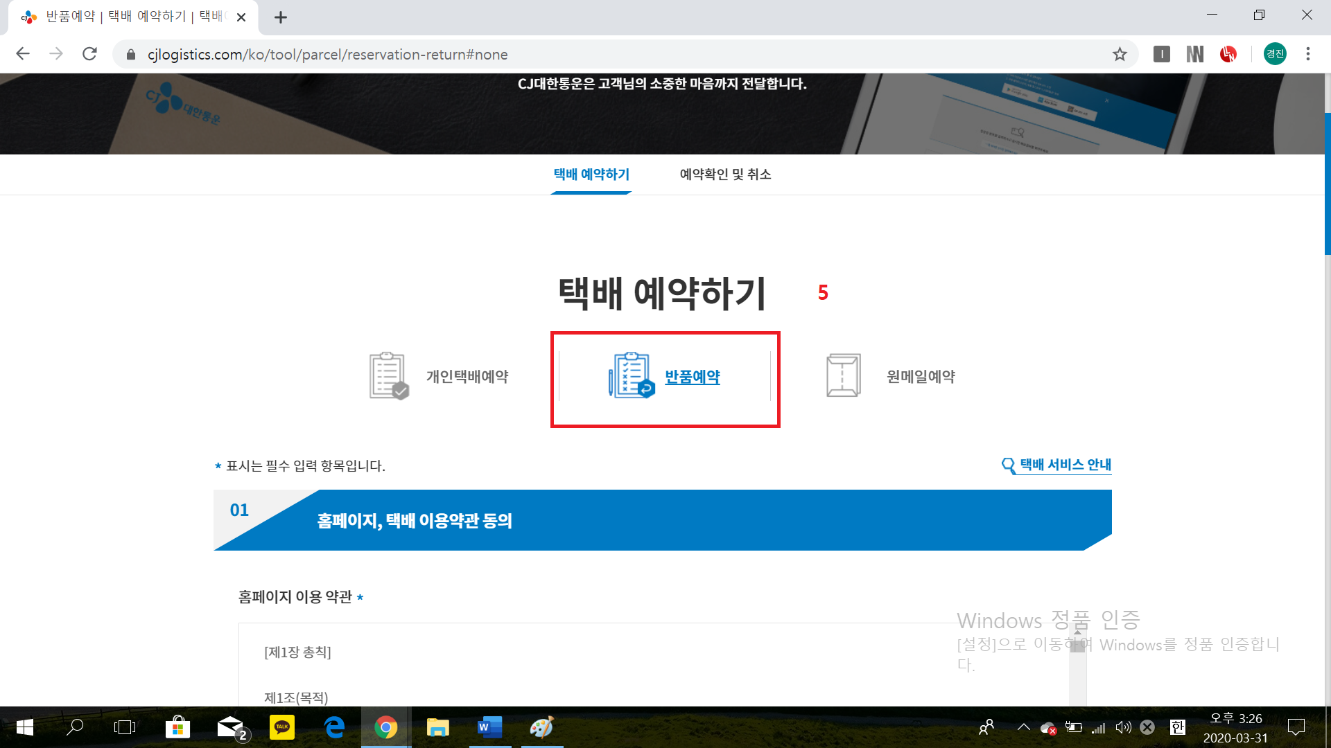 자! 이렇게 PC로 cj 택배 반품 예약 방법을 말씀드렸는데요