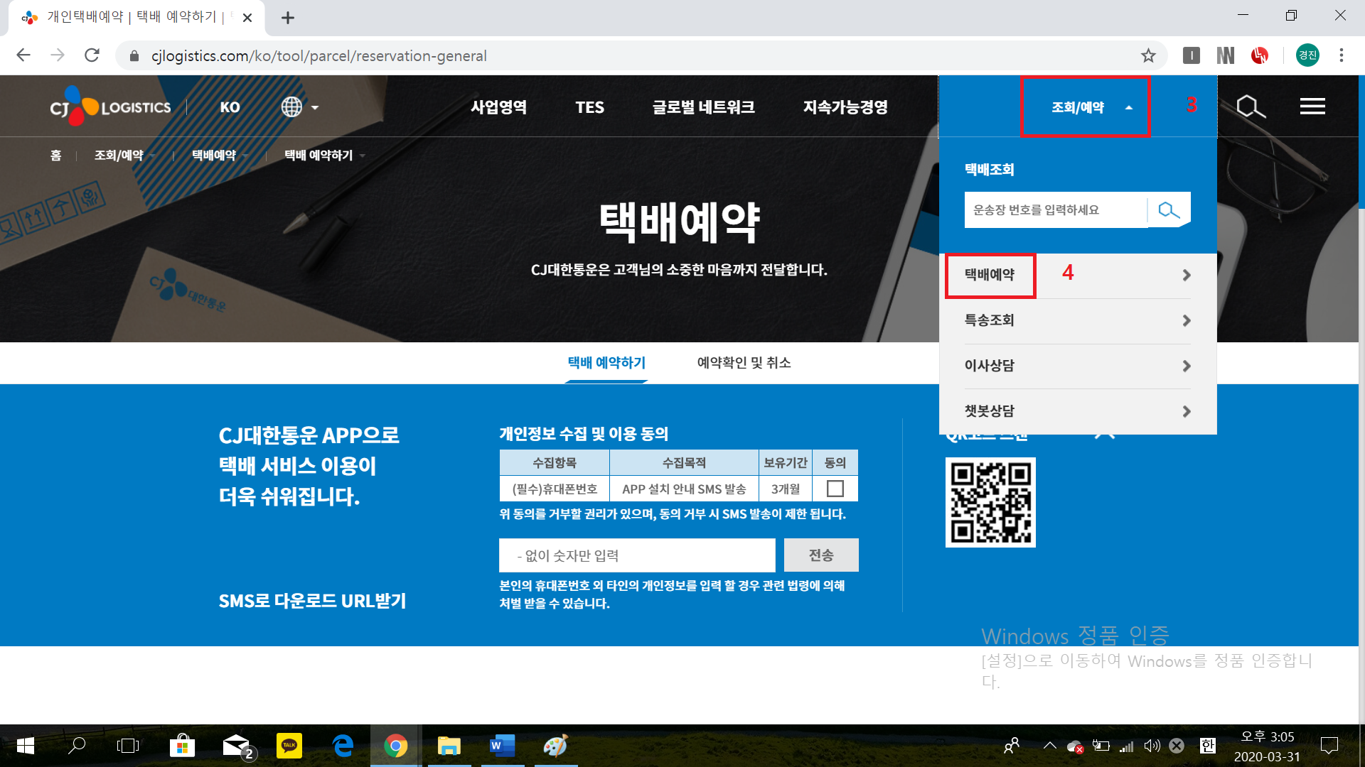 1. Cj 대한통운을 검색하고 홈페이지에 들어간다
