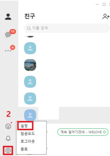 그 후 왼쪽 하단에 설정 아이콘을 클릭해 설정을 들어가 주세요.