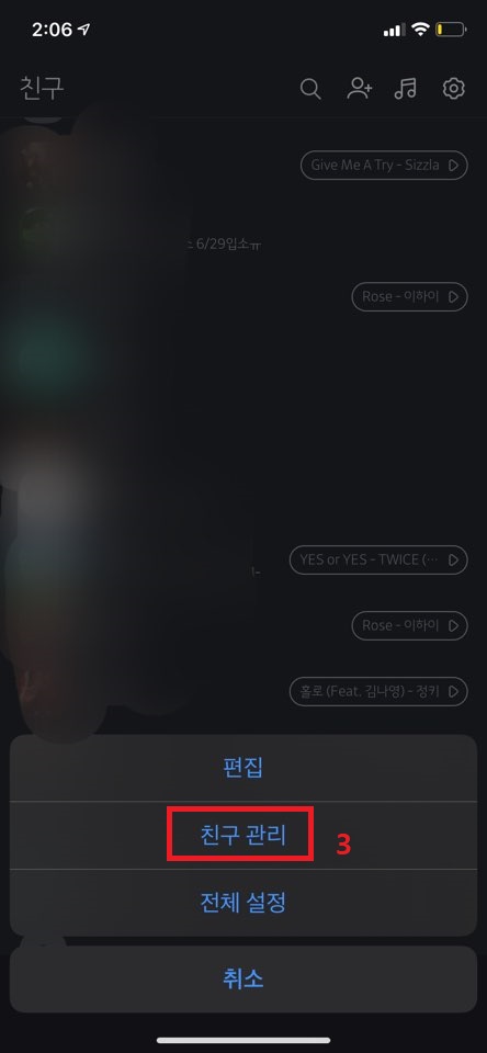 그다음 친구 관리를 들어가 주세요.