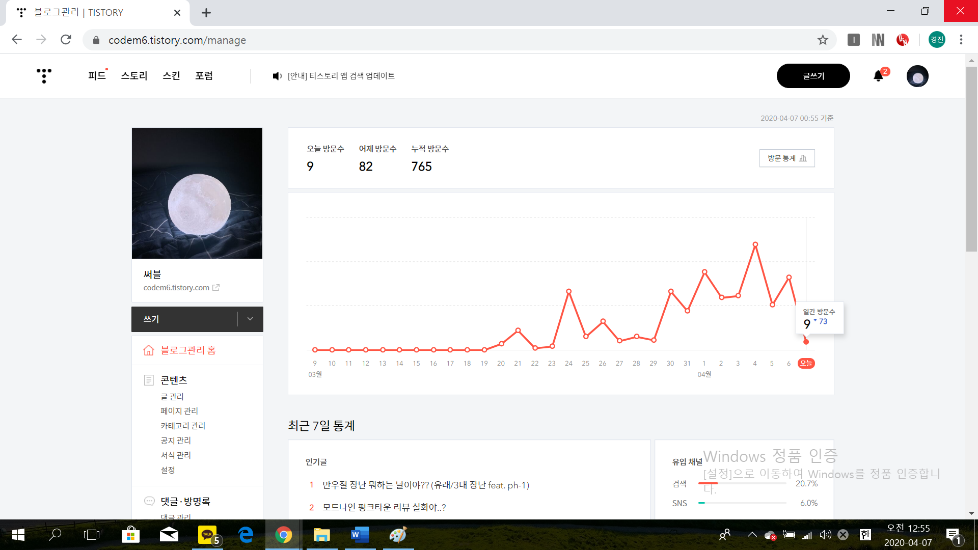 티스토리 블로그 12일 차 누적 방문자 수 300명 돌파!!