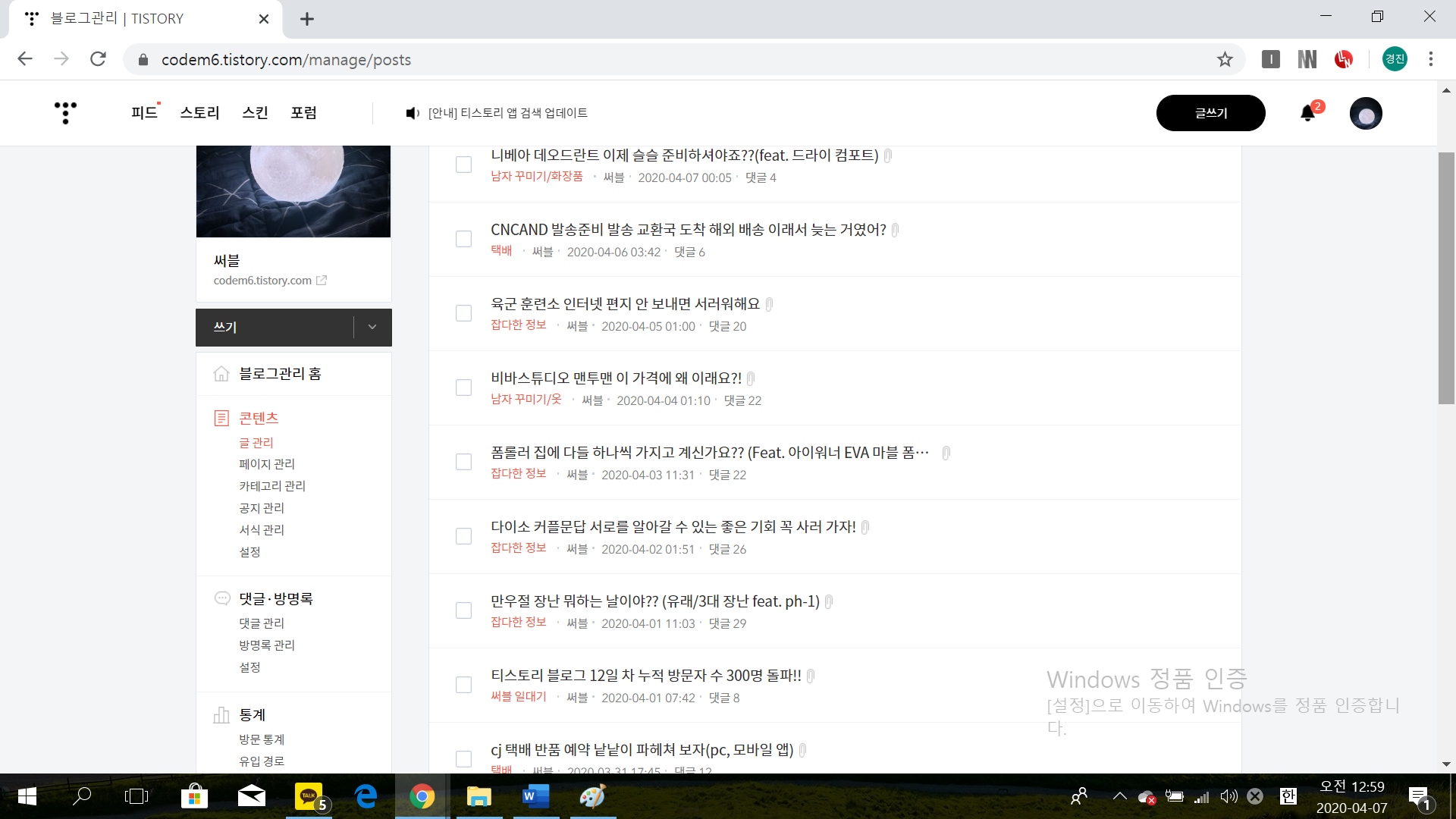그럼 방문자 수가 이날 제일 많으니까 이날 어떤 글을 썼는지 한 번 볼까요?
