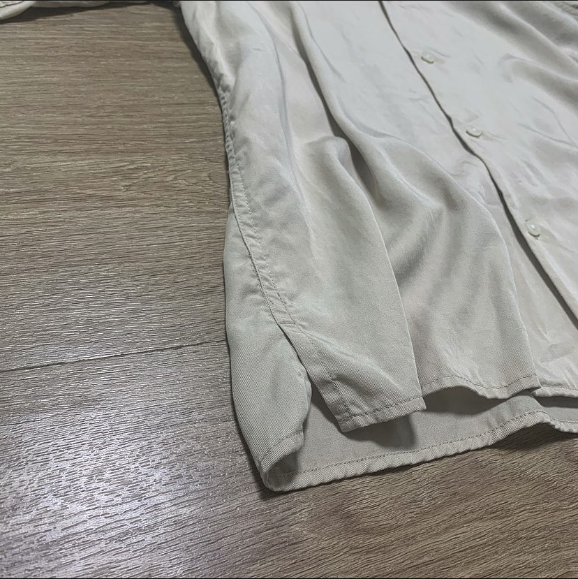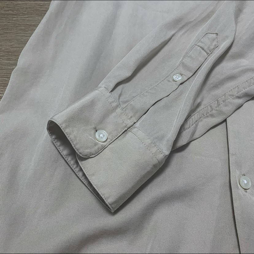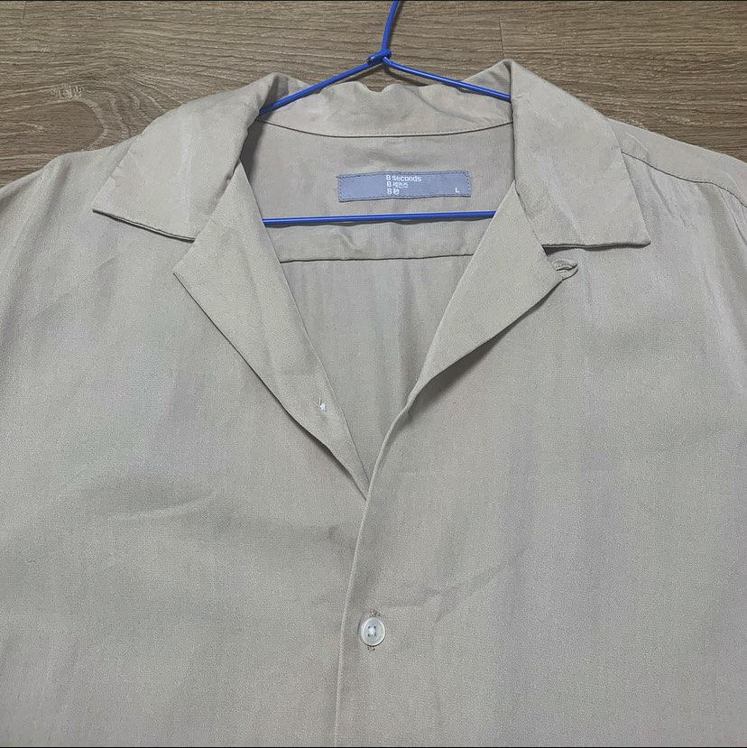 소재 또한 아래 착 샷과 함께 설명할 테니 끝까지 읽어주세요. 먼저 8 세컨즈 오픈 칼라 셔츠의 카라는 상품명에서 알 수 있듯 오픈형입니다. 제가 구매한 옷은 베이지색에 여름에 맞는 시원시원한 디자인이죠. 하지만 이를 살리지 못하고 안에 흰 티셔츠를 입는다거나 난해한 코디로 옷을 망치는 분들이 있습니다. 그러지 마시고 여름에 맞게, 옷에 맞게 오픈 카라 셔츠는 안에 에어리즘이나 속옷을 제외하고는 입지 않으시는 것을 추천합니다.